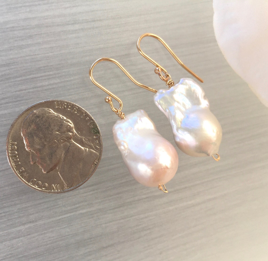 Beautiful, fun to wear and relatively inexpensive! View details Our Nova Large Baroque Pearl Drop Earrings pair nicely with our Nova Paperclip Chain Large Pearl Necklace and are a popular gift for 40th Birthday or as bridal.